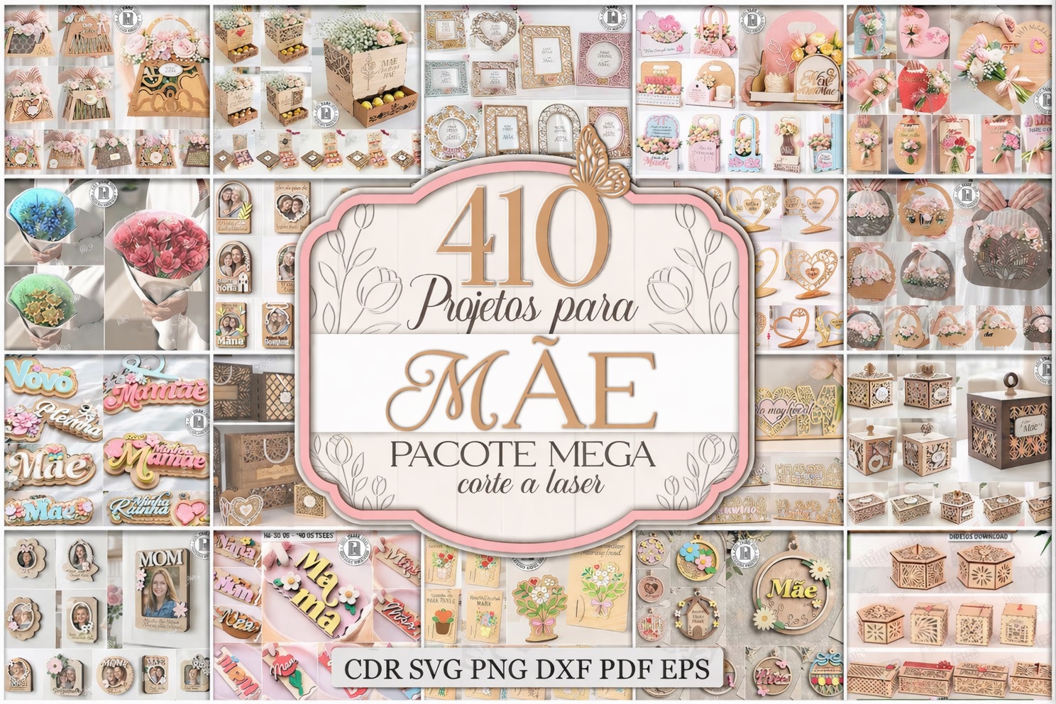 Coleção de vetores premium para laser. Projetos testados com 410+ arquivos prontos para você cortar e lucrar.